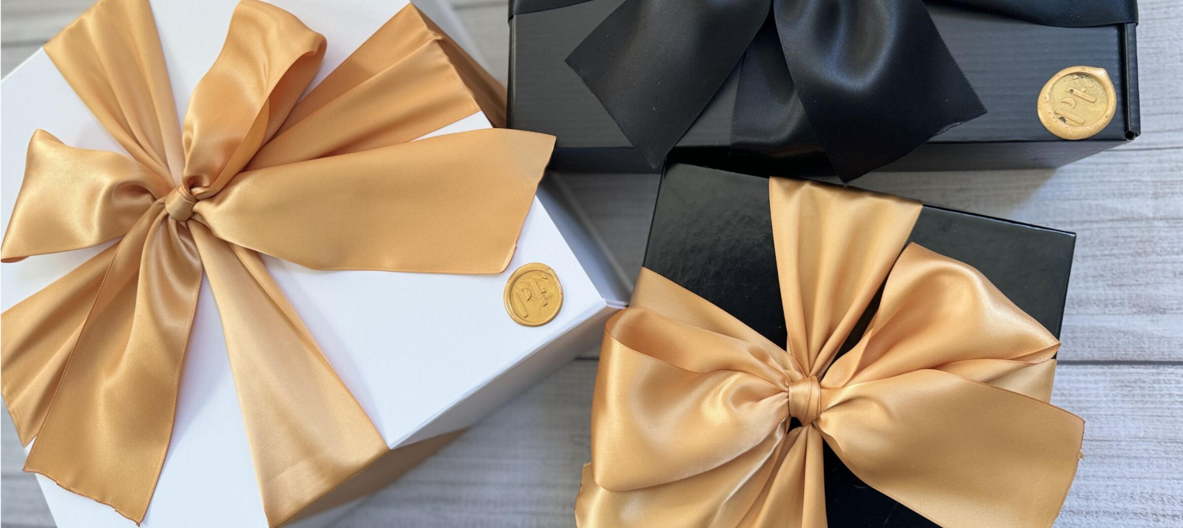Box customization options can include as much or as little as you'd like including the contents and the box itself. Custom packaging options: paper, bows, wax seal. Giftbox contents can be customized to suit your preference, from names, dates, to logos and branding. Already have something in mind? Submit a request.Reach out to us to get the ideas flowing; we're available for any questions. We'd love to chat!